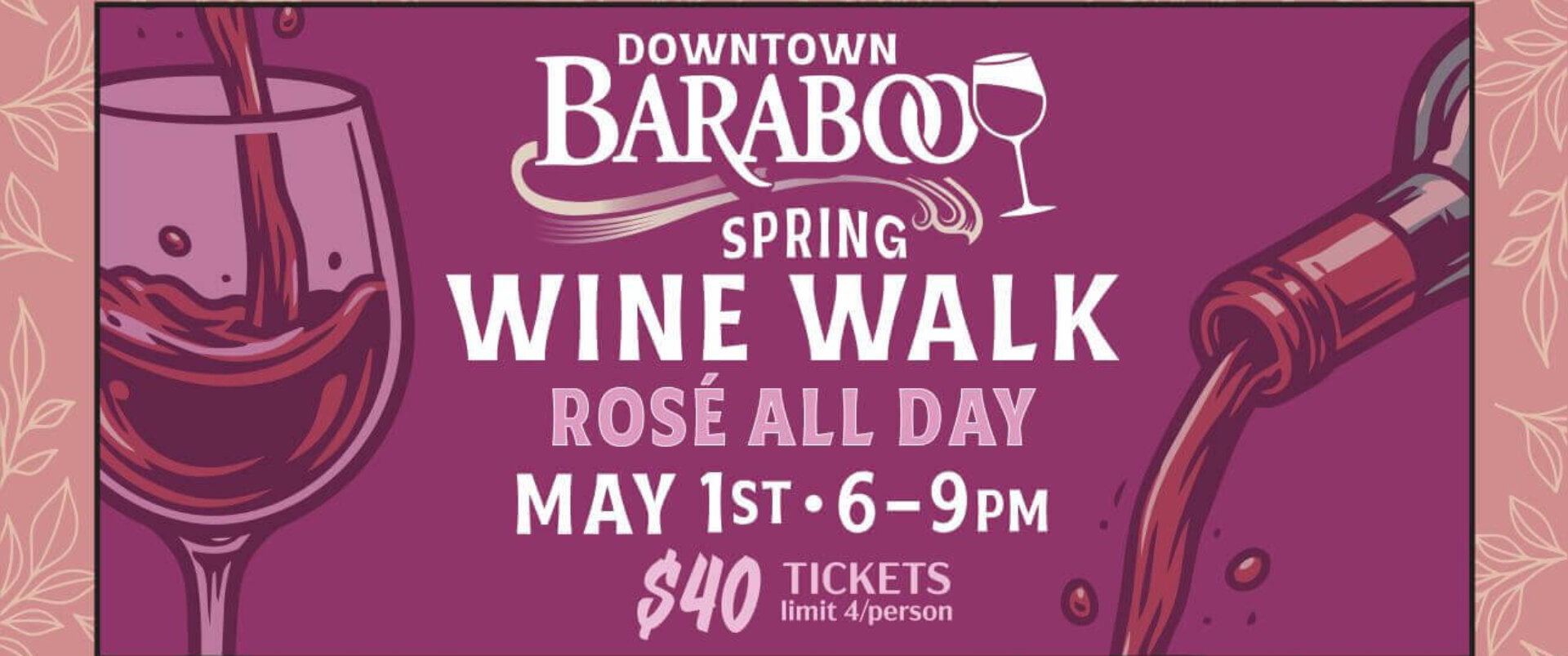 Sip, stroll, and shop your way through a perfectly pink spring evening! Join us for the annual Spring Wine Walk in beautiful Downtown Baraboo, where over 40 locally owned shops will be pouring rosé, bright spring wines, and sharing a little seasonal cheer.