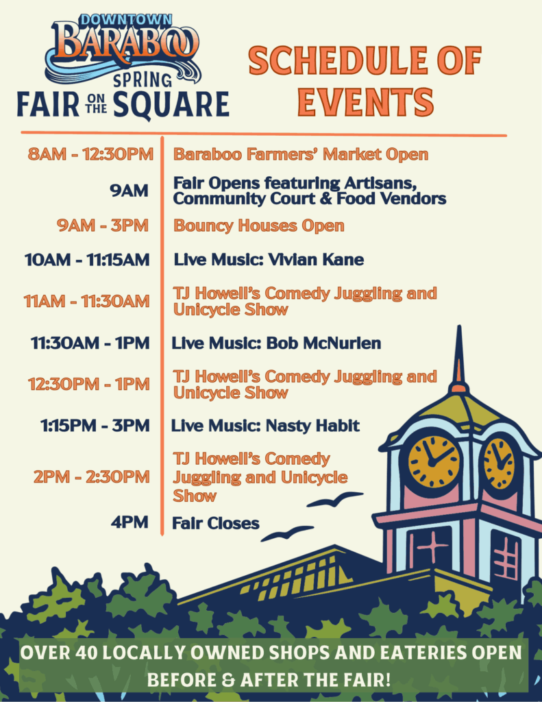 Vendor applications for the Fall Fair on the Square will open Saturday May 9, 2026. Registered vendors can visit the Vendor Dashboard to apply: https://downtown-baraboo-inc-b8ed7.web.app. Vendors who have not yet registered for the dashboard will need to reach out to the Downtown Baraboo, Inc. Team at downtownbaraboo@gmail.com.